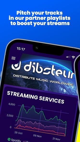 Dibsteur allows you to keep an eye on your stats and earnings no matter where you are.Stream your music all over the world has never been so quick and easy. Our goal is simple: to distribute your projects worldwide and to pay you for free.