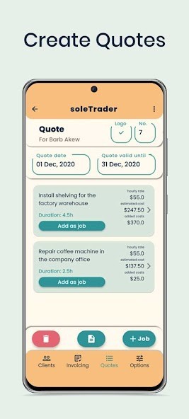 ** Try all soleTrader features before committing: you can create up to 3 clients with 3 jobs per client absolutely free!
