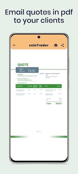 • Save quotes and invoices in PDF format to your device or print to your local Wi-Fi printer.