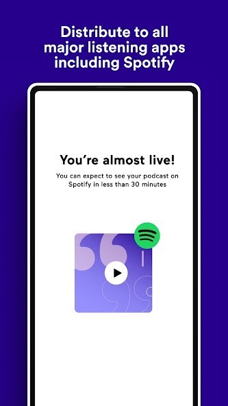 • Share your podcast to the most popular listening platforms including Spotify, Apple Podcasts, Google Podcasts, and more to reach new audiences everyday—all with a single tap
